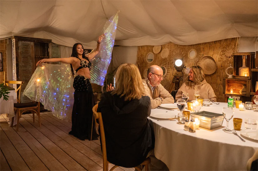 - Gazing up at a sky full of Sahara stars during a private dinner under the open night.